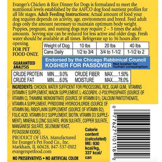 Evangers Classic Chicken and Rice Dinner Canned Dog Food