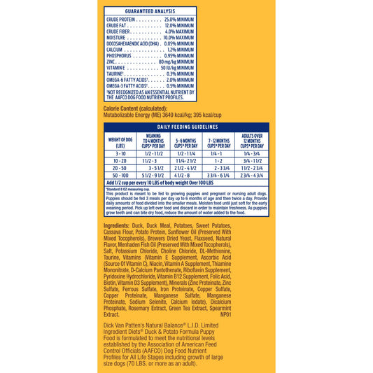 Natural Balance L.I.D. Limited Ingredient Diets Grain Free Potato and Duck Puppy Formula Dry Dog Food